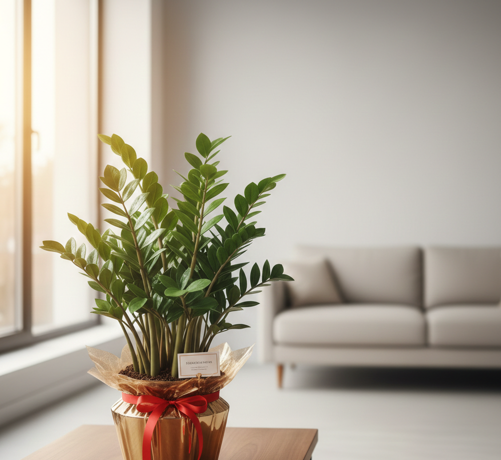금전수는 다육질 줄기와 두꺼운 잎이 특징인 관엽식물입니다.