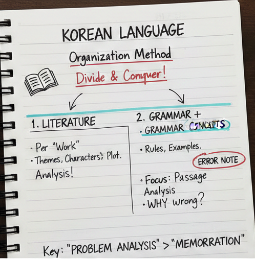 국어는 작품, 문법, 비문학이 섞여 있기 때문에