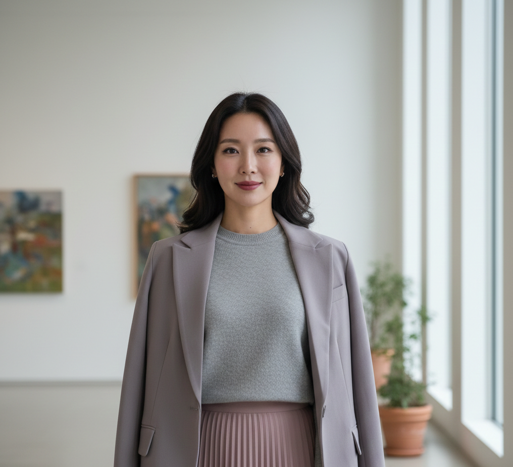 낮은 채도 + 부드러운 쿨톤 + 그레이 한 스푼