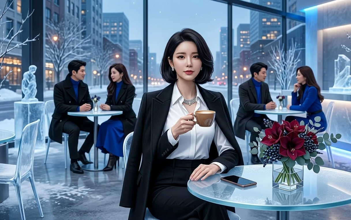 겨울 타입은 깔끔하고 대비 있는 스타일이 잘 어울립니다.