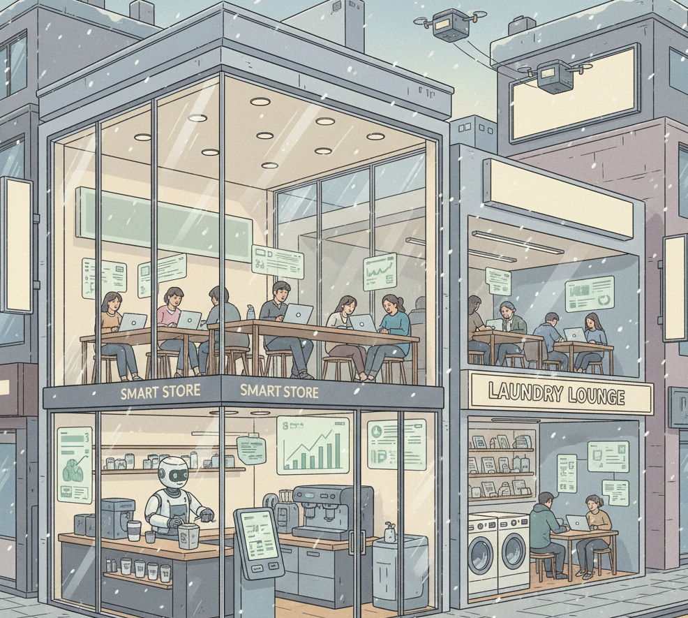 - 무인 보안: 야간에는 AI 카메라가 이상 행동을 감지해 점주에게 알람을 보냅니다.